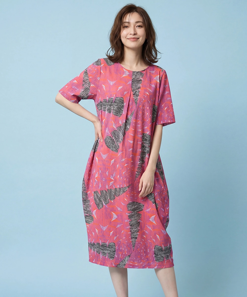 【大きいサイズ】デザインコクーンワンピース /洗濯機で洗える