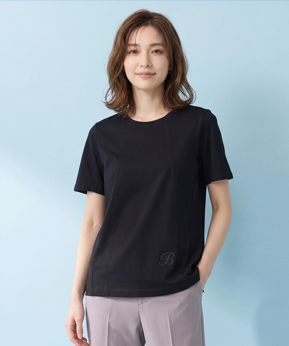 【大きいサイズ】カーブ切り替えコットンカットソー /洗える