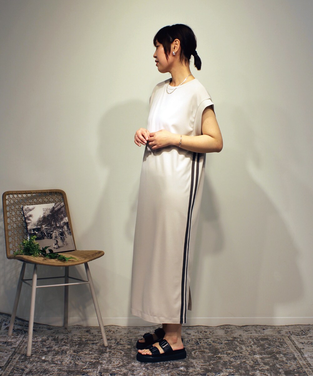 配色ラインテープがアクセントのIラインワンピース。