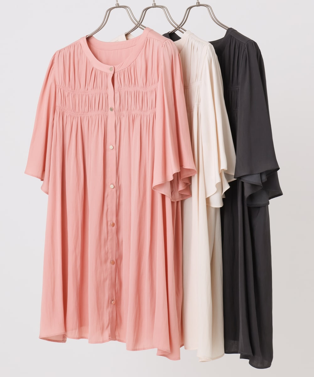 ジャストな肩位置とフレア袖で上半身をスッキリみせてくれます。