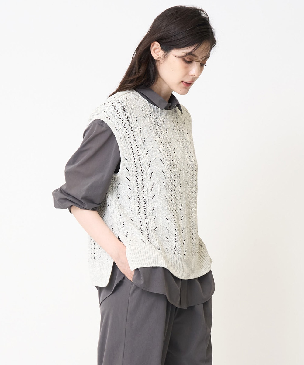 優雅さと涼感を兼ね備えたフローラルプリントワンピースは、 あなたの夏のスタイルを華やかに彩ります! すっきりとしたトップとウエストラインから緩やかに広がるタックシルエットが、 美しいコントラストを生み出し、どんなシーンでも映える一着です。 さらに、透かし編みニットベストをレイヤードすることで、 大人のカジュアル感と上品さをプラス。 和紙糸とラメ糸の絶妙な組み合わせが涼しげで、 体のラインを気にせず楽しめます◎ 着回し力抜群なこのアイテムは、太ももカバーも叶え、 きれいめ可愛いスタイルを実現。 ワンピースアレンジを楽しむことで、あなたの個性を引き立てます。 毎日のコーディネートに新しい風を吹き込み、特別な夏を演出しましょう! 大人コーデに欠かせない一着を、今すぐチェック。 あなたのワードローブに、上品な魅力を加えてみてください★ 着用サイズ:M