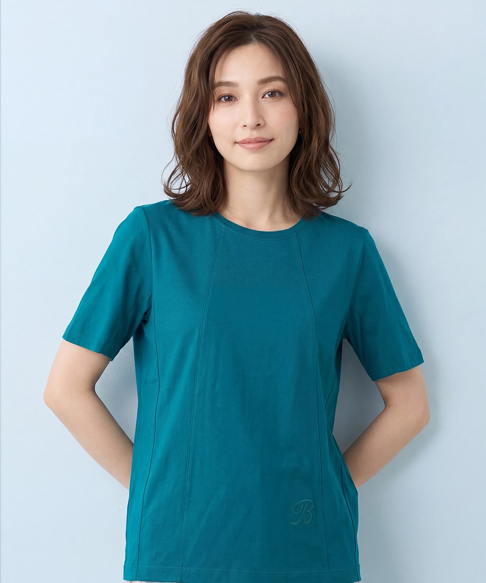 【大きいサイズ】カーブ切り替えコットンカットソー /洗える