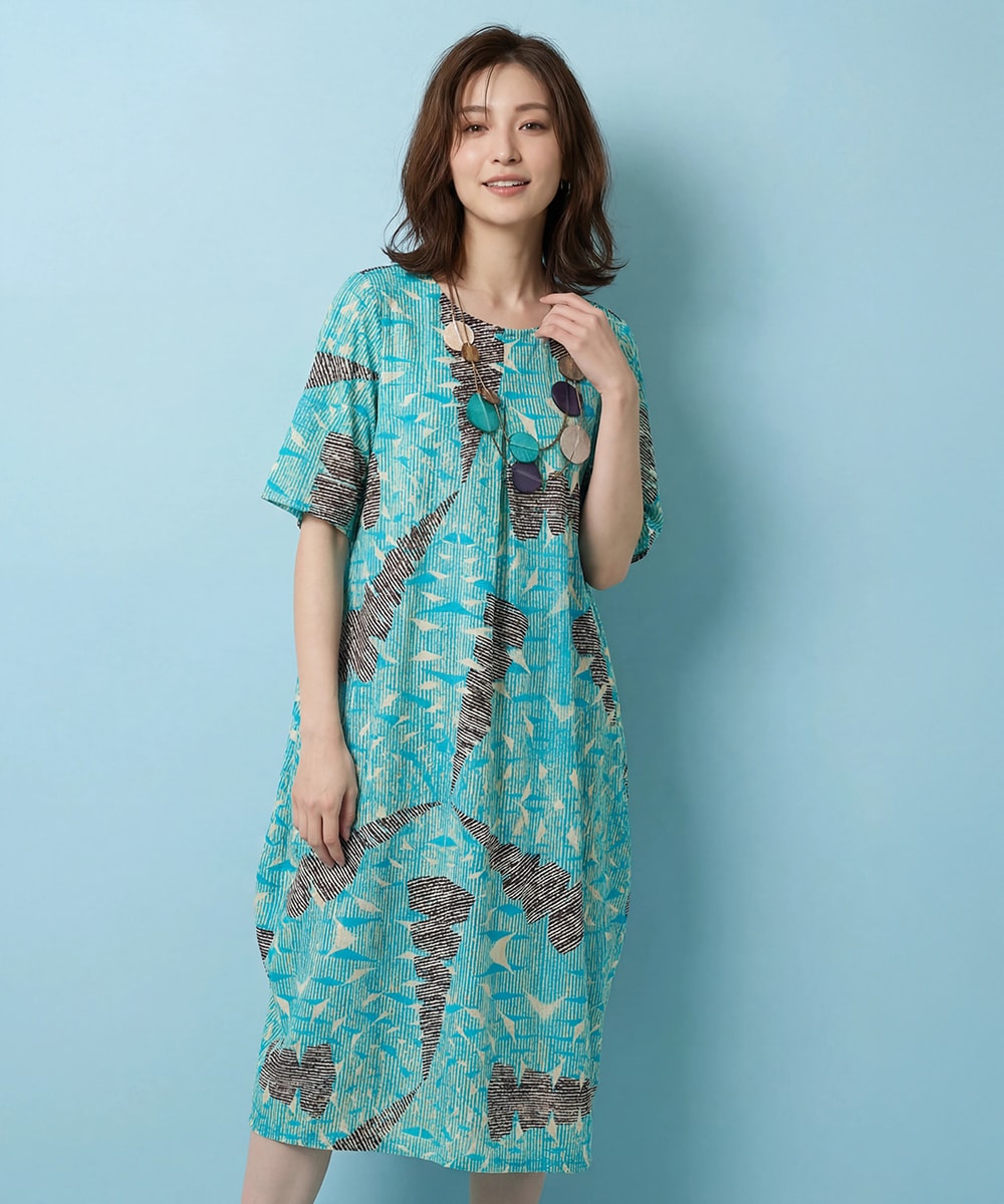 【大きいサイズ】デザインコクーンワンピース /洗濯機で洗える