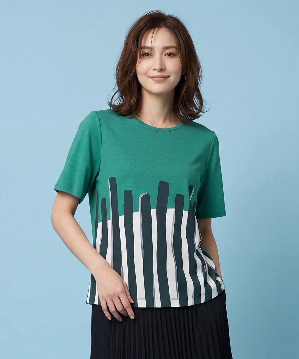 幾何学柄プリントカットソーは、