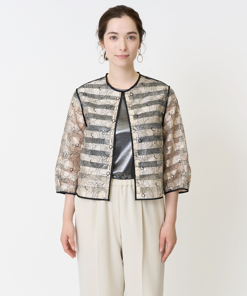 仕事にも使える色柄と、全体的に楽なシルエットでスカートにも合います。
