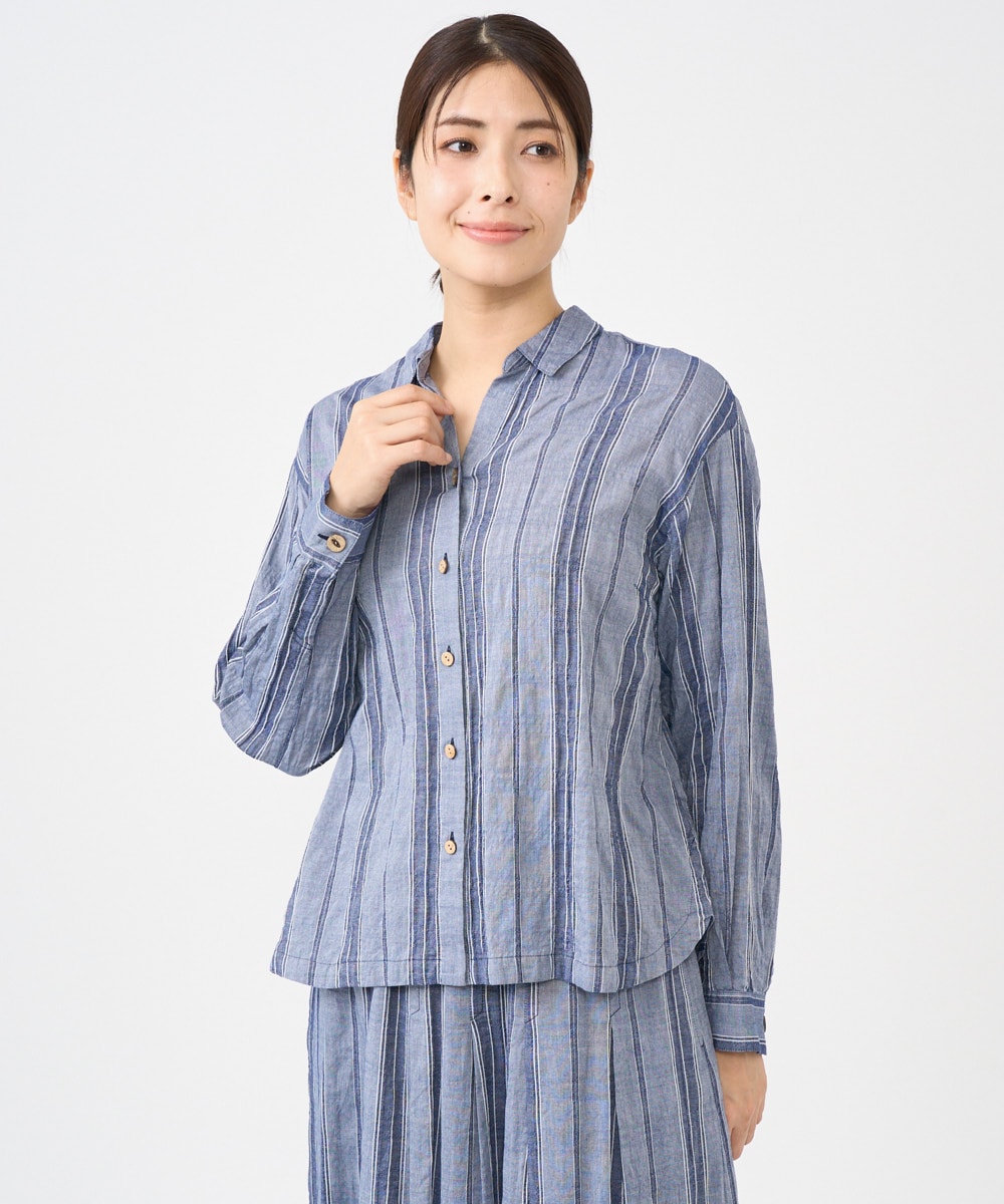 洗えるブラウスとスカートは、涼やかなストライプデザインが魅力‼︎