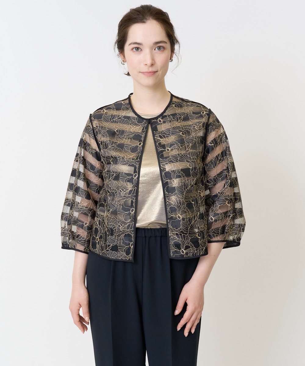 繊細な透け感と華やぎ満点のラインフラワー刺繍を施したオシャレ羽織り🎶