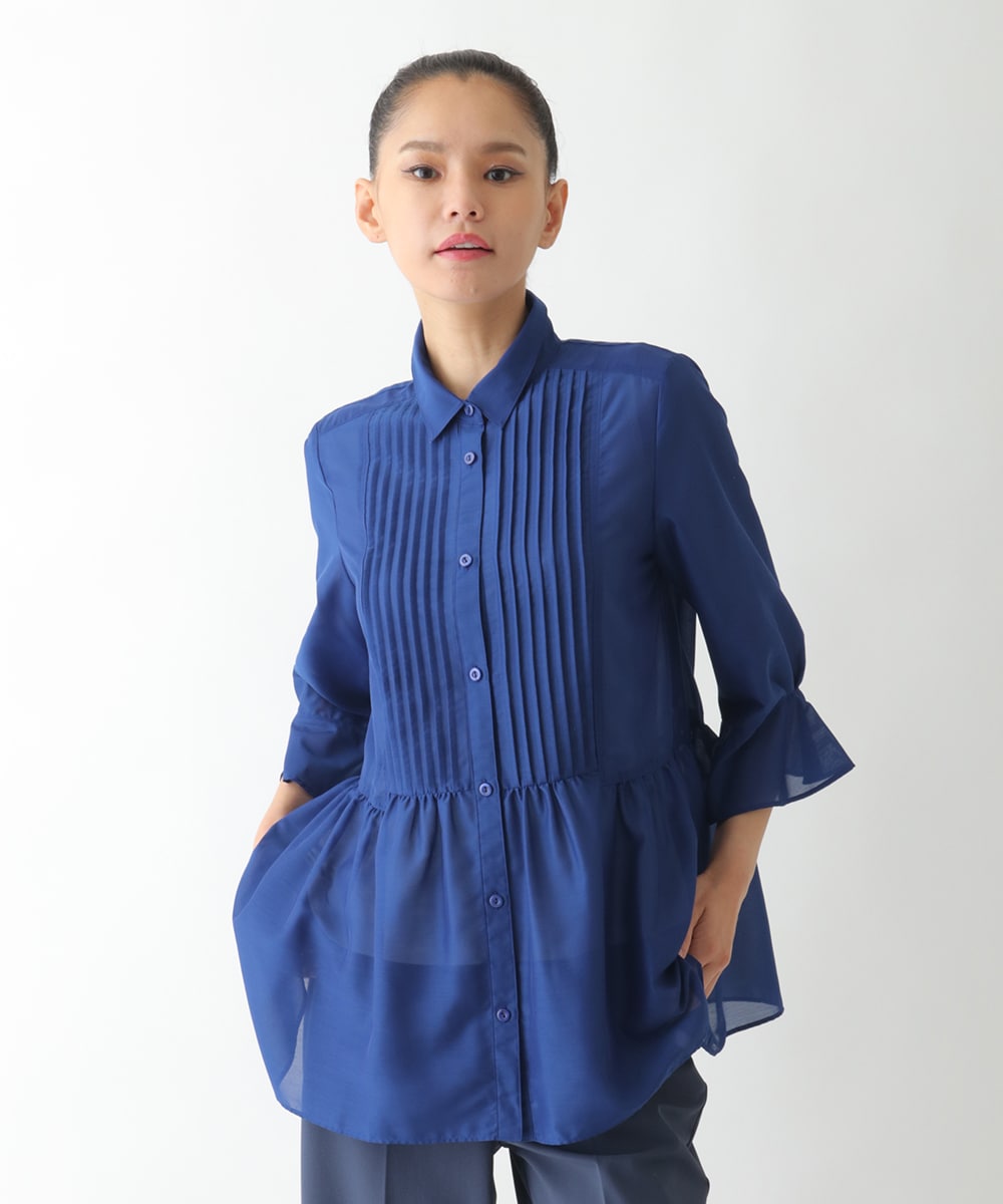 【大きいサイズ】ピンタックギャザー切り替えシアーブラウス /洗濯機で洗える