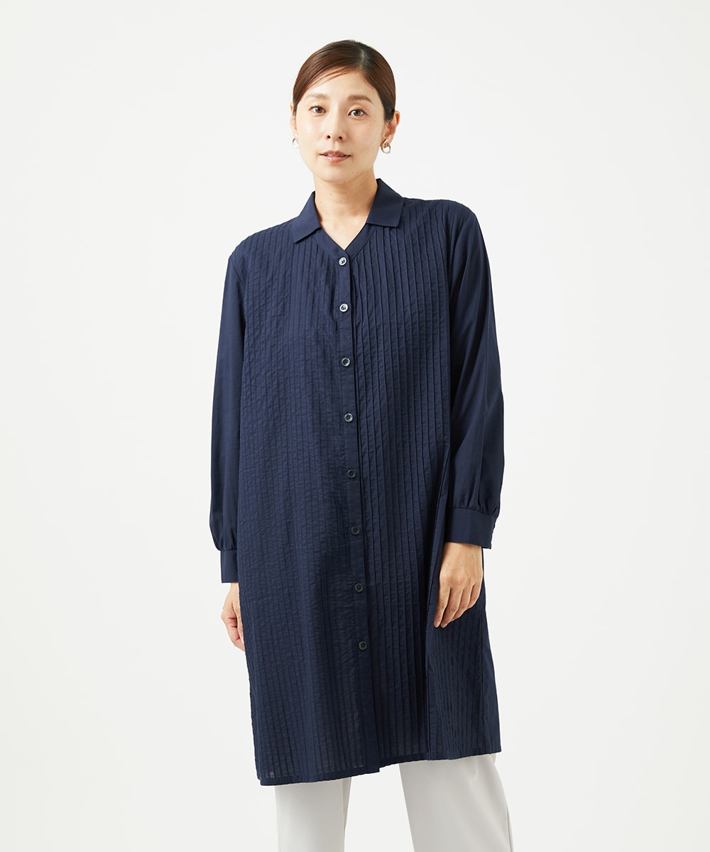 2WAYシルエットが楽しめるコットンローンピンタックロングブラウス‼︎