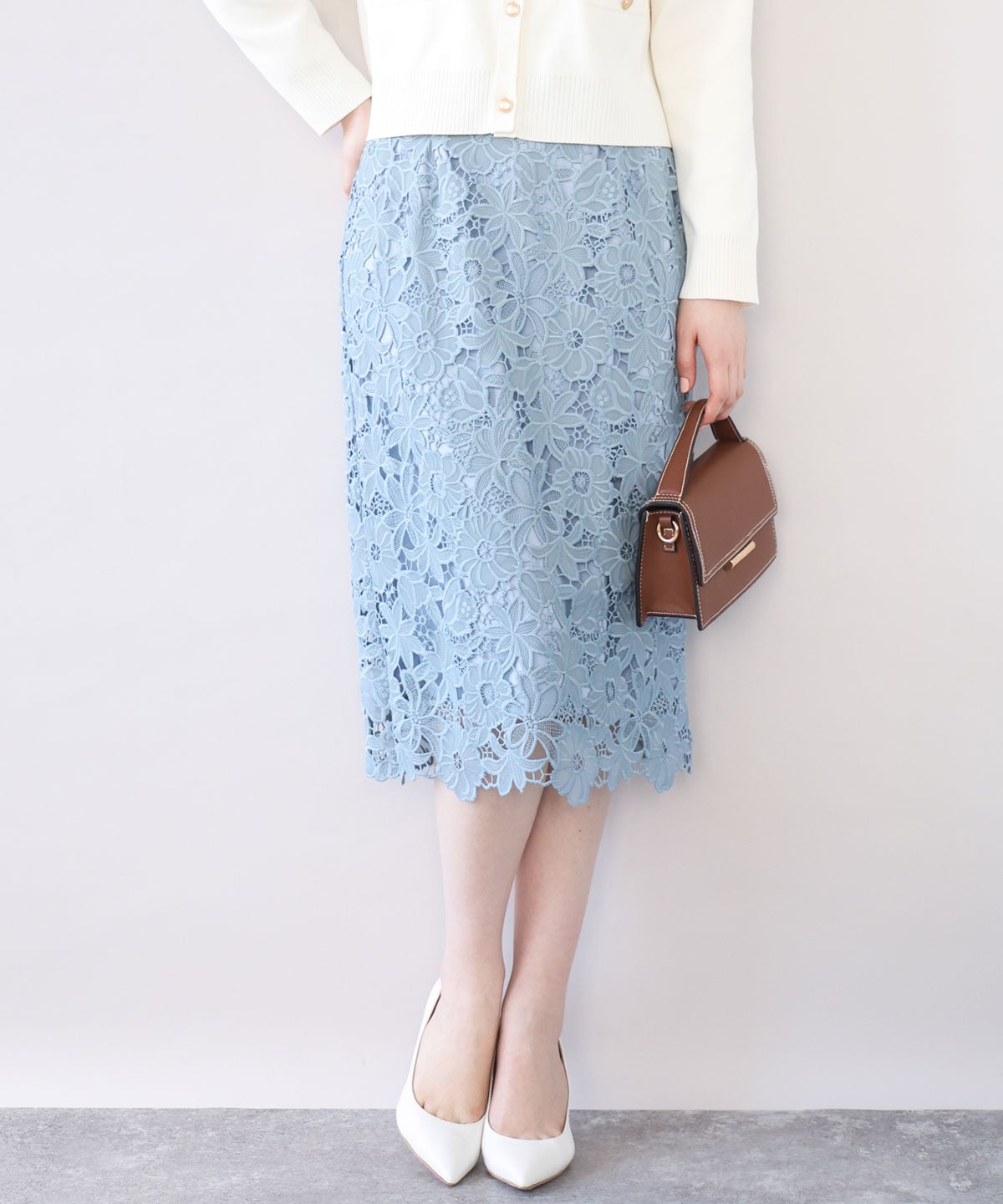 存在感のある大花レースは、上品で華やかな着こなしにぴったり。