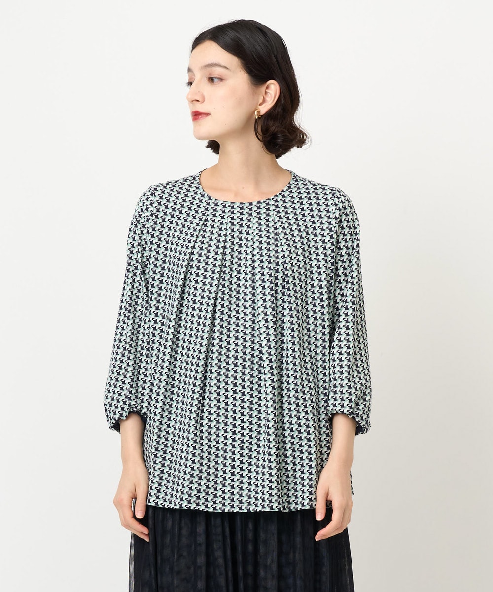 小付きのジオメトリック柄が女性らしくカジュアルコーデにオススメ。