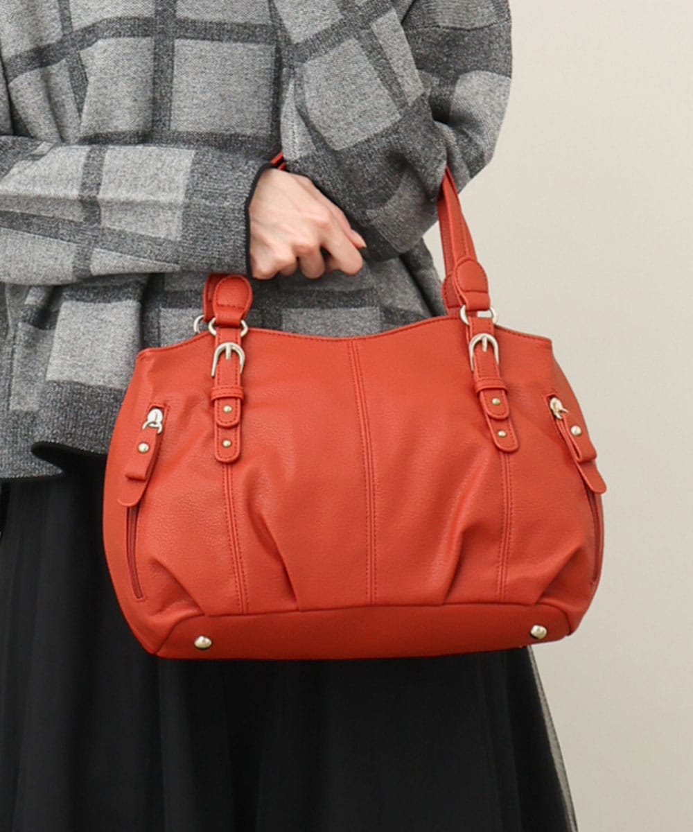 [2WAY]ベルトアクセントラウンドトートバッグ