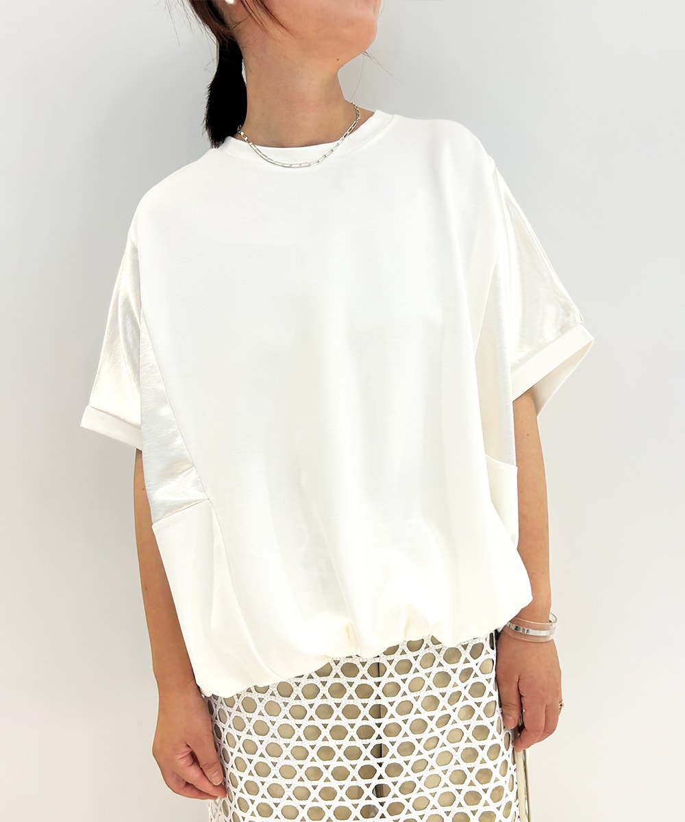実現する「サテンライク切り替えカットソー」。