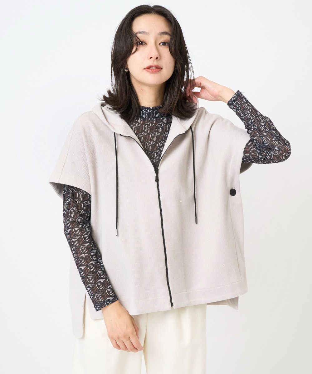 ポンチョライクジャージーベストは、レイヤードスタイルを楽しむのに最適なアイテム。