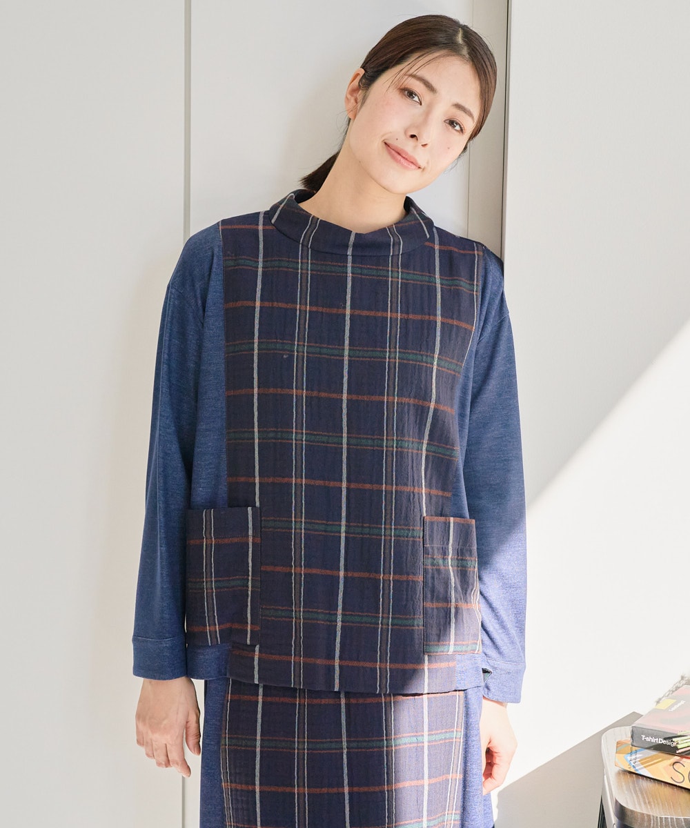 [洗える・日本製]二重織チェックプルオーバーブラウス