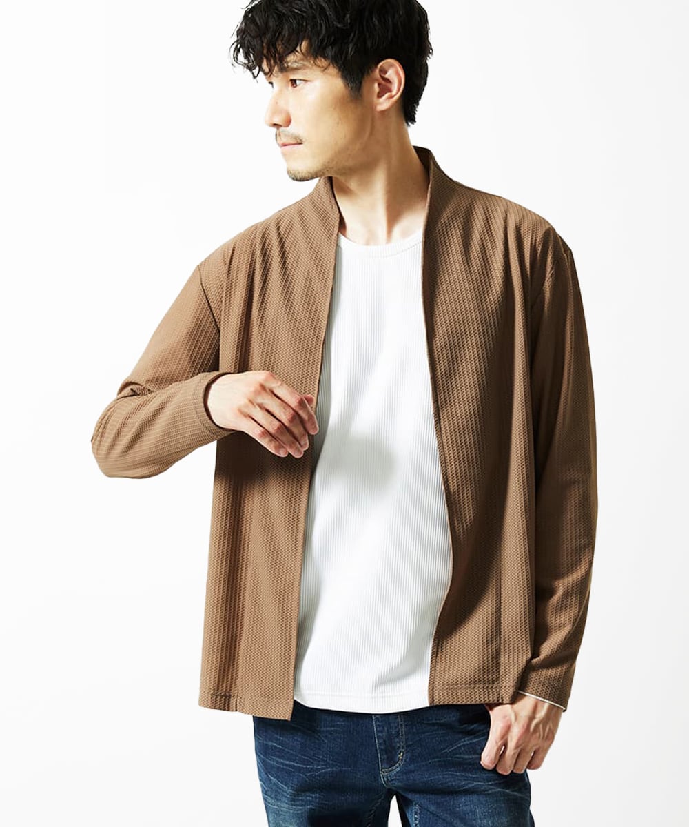 スイングメッシュカーディガンは、通気性に優れたメッシュ素材で長時間の着用でも快適。