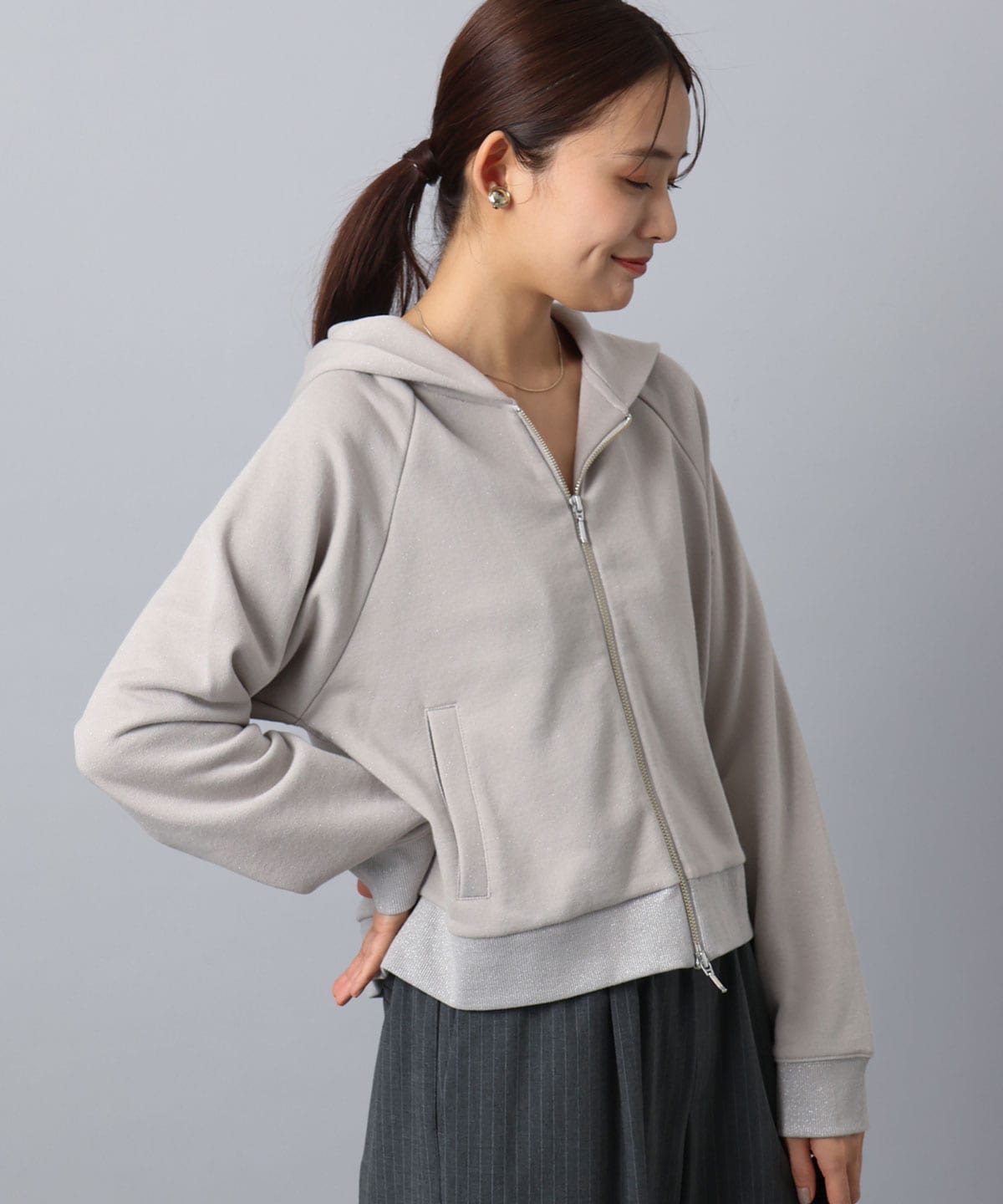 ラメ裏毛スウェットダブルジップパーカー/洗える