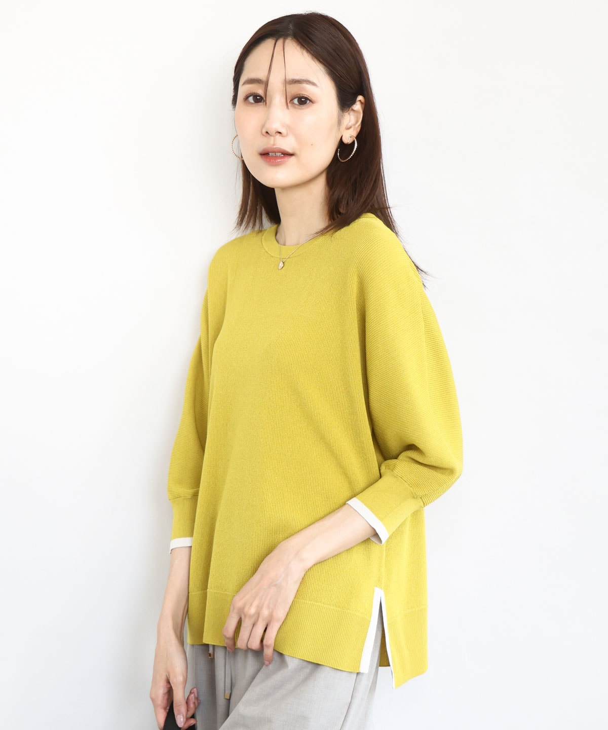 袖口やスリット脇に入った配色がさりげないアクセントに。