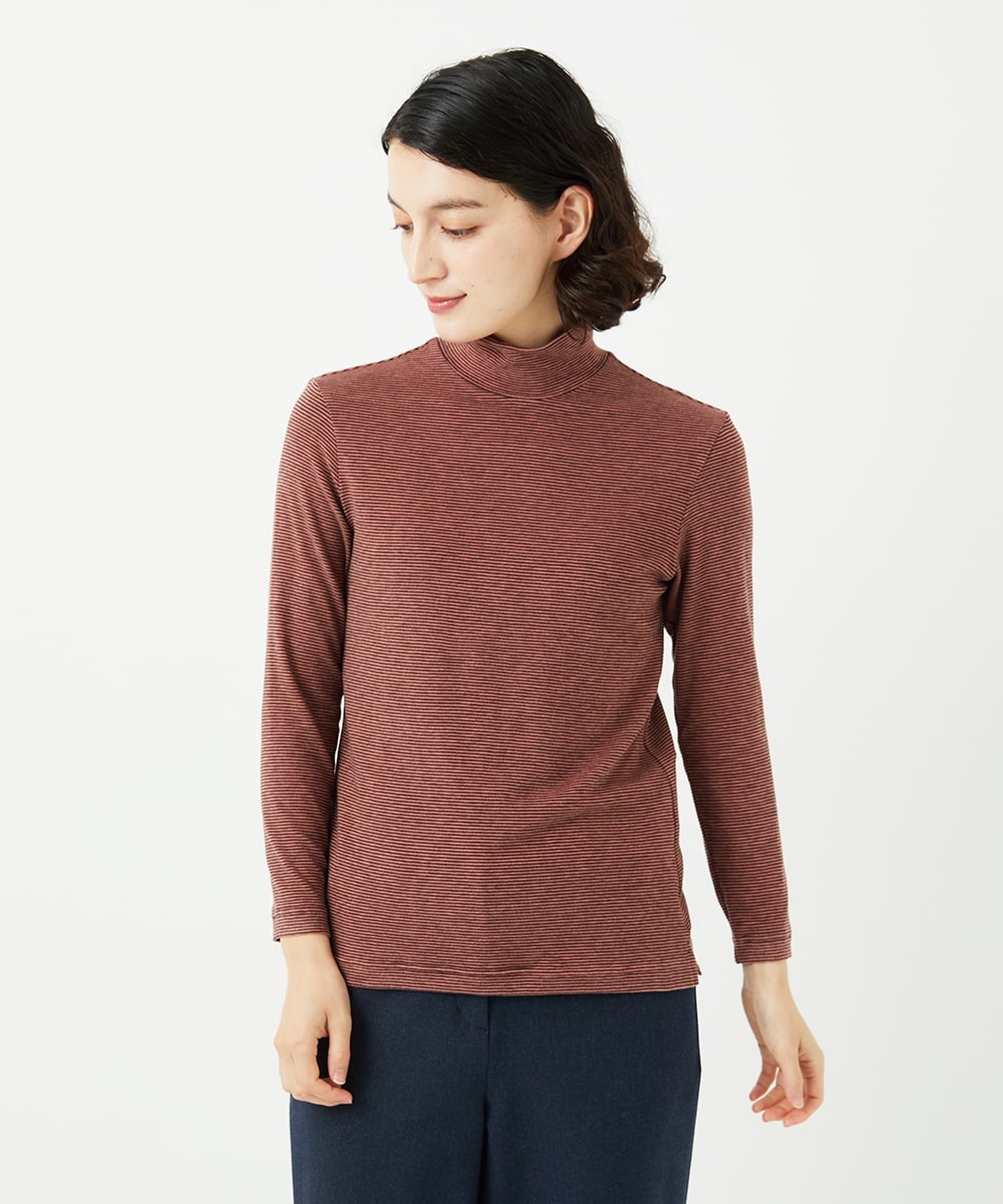 ミッププロッサムベア天ボーダー柄ハイネックカットソー