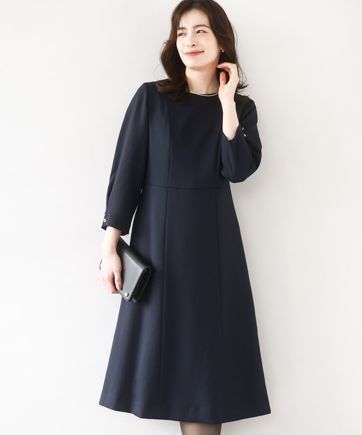 膝が隠れる長さも絶妙できちんとした印象です!