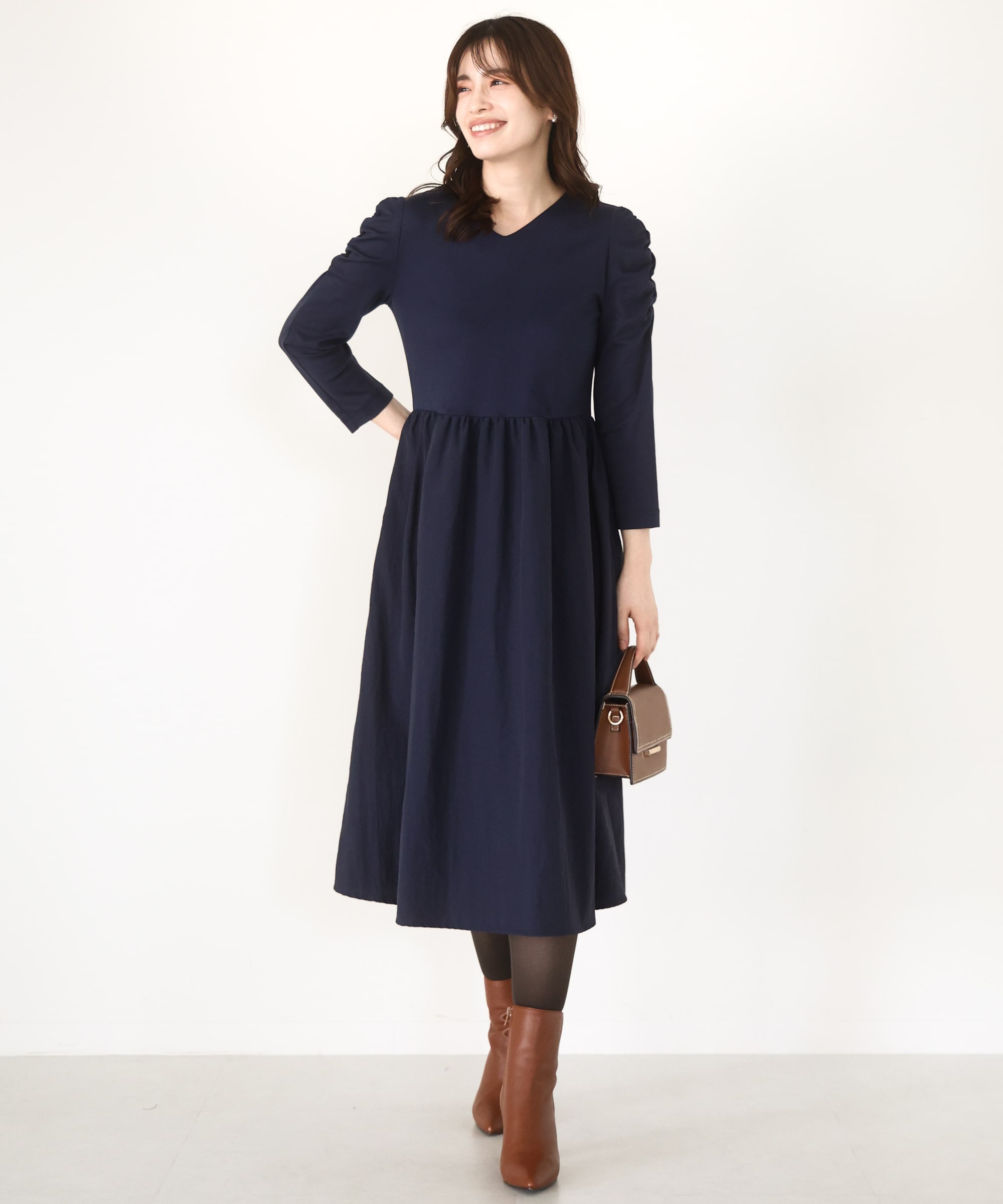 ギャザースリーブドッキングワンピース/洗える/WEB限定サイズあり