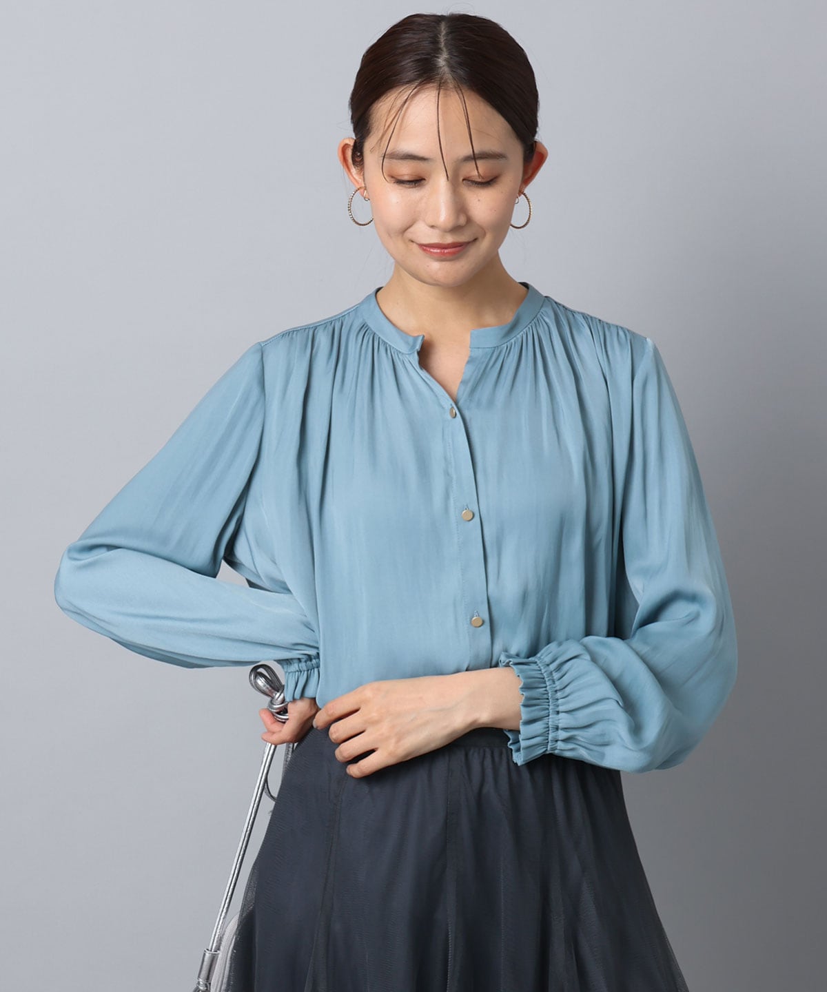 【ブラウス:起毛サテンスキッパーブラウス】
