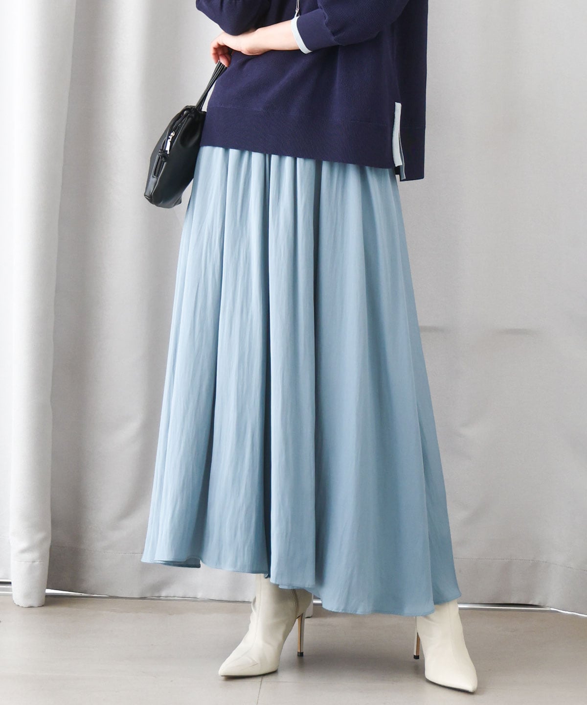 ●体型データ: 肩幅37センチ 肩〜親指の付け根:51センチ ウエスト〜かかと:94センチ ●普段着用サイズ: トップス38で身幅はジャスト、お袖丈は少し余るくらい。パンツはサイズ展開があれば36サイズを着用しています。肩はしっかり、上半身は薄めの骨格ナチュラル体型です。 ◾️ワンピース見えセットアップ◾️ 単品ではもちろんセットであると重宝する、お食事会や通勤にもおすすめのきれいめパンツセットアップのご紹介です。 【ブラウス:起毛サテンスキッパーブラウス】 さらさらと軽い素材がロングシーズンで着用可能な、サテン素材のきれいめブラウスです。素材感はやや薄手のなめらかな手触りで、ハリ感少なめの柔らかな質感。ギャザーが映えるシンプルなデザイン&光沢感のある華やか見え素材で、毎日のお仕事だけでなくお食事会などにもおすすめです。お袖はゴム入りで、タックアップしてもすっきり。しわになりにくく洗濯機洗い可能なので、ご旅行や出張の持ち運びにもおすすめです。 【パンツ:起毛サテンガウチョパンツ】 光沢のあるサテン素材がスタイリングに映える、MK定番のデザインパンツ。ふくらみ感のある柔らかな手触りで厚手すぎず、ロングシーズンで着回せそうです。スカート見えする分量感ですが、腰まわりのボリュームが出過ぎずトップスの着丈を選ばず着回せるのがうれしいポイント。ウエストは総ゴム仕様で、ストレスフリーではけました。しわになりにくく洗濯機洗い可能なので、ご旅行にもおすすめの一枚です。 ◾️ご覧いただきありがとうございます。着用アイテムの色展開やサイズ展開などの詳細は、下の商品ページをご覧下さいませ ↓
