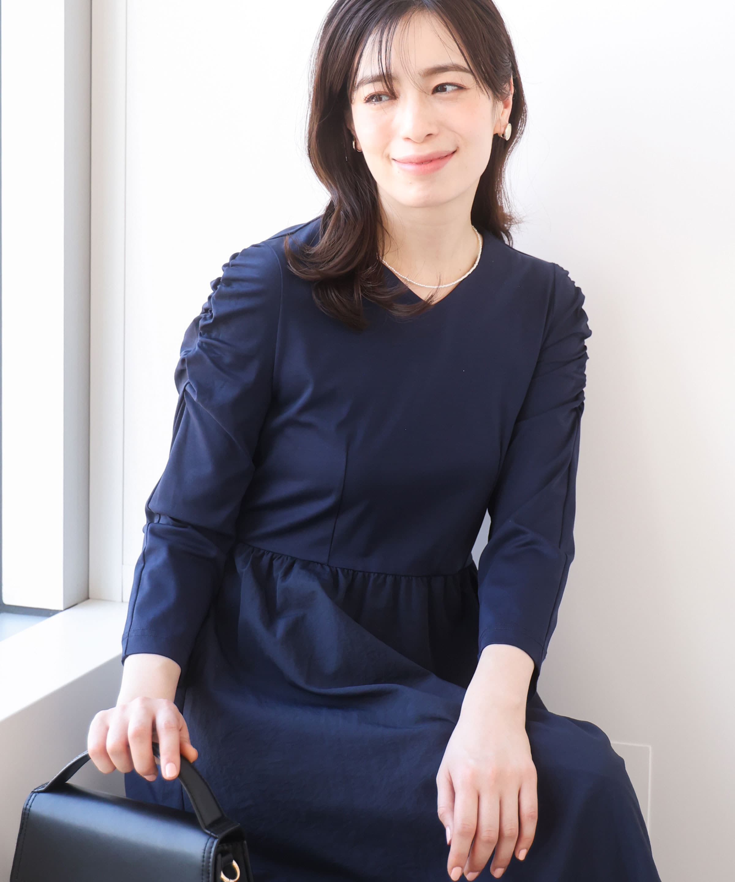ギャザースリーブドッキングワンピース/洗える/WEB限定サイズあり