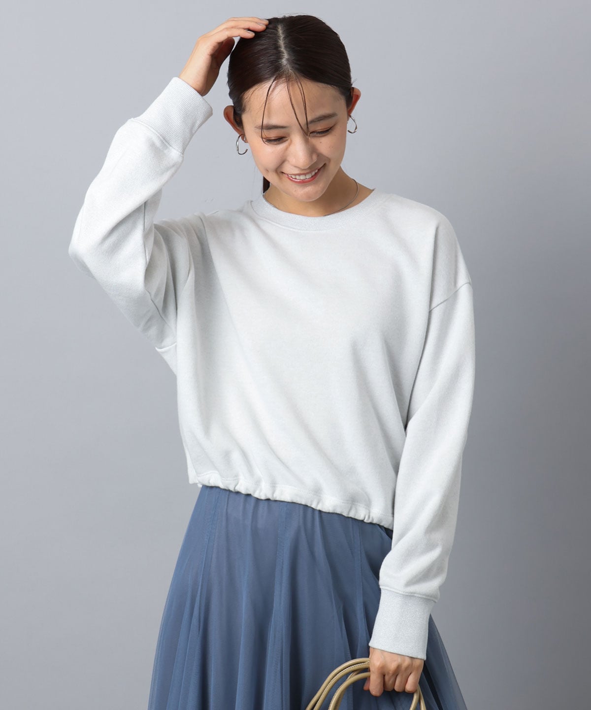 クロップド丈ながらたっぷりとした身幅と袖付けによるリラックス感があり着心地がとても良いです。
