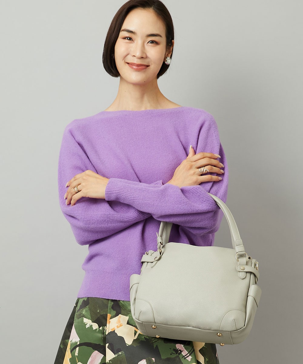 シンプルプルオーバーとカーディガンはヒップがしっかりと隠れるミドル丈になっています。