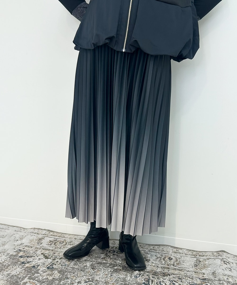 ボトムスにはグラデーションカラーが魅力的なデザインスカート。
