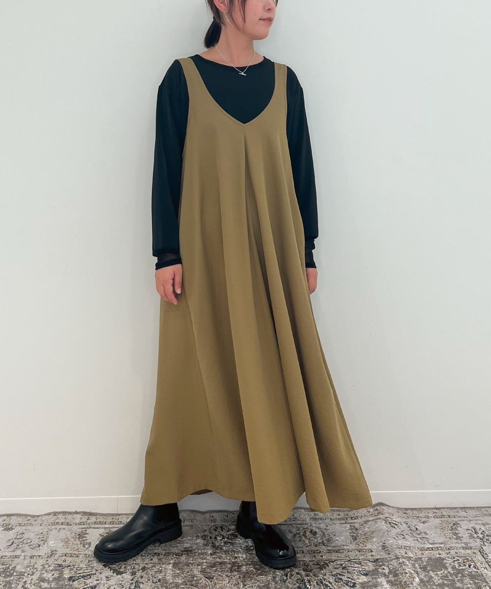 とろみ素材が身体のラインを拾わずきれいなAラインに。