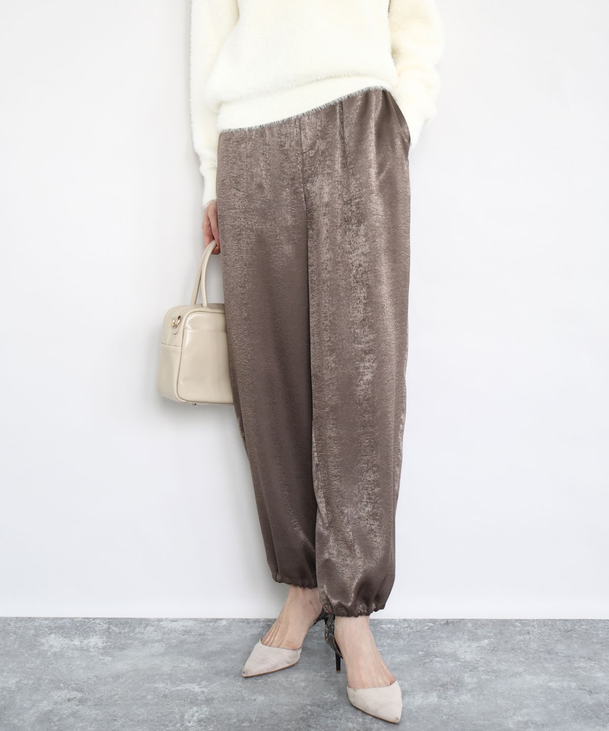 サテンヴィンテージ調ワイドパンツ/接触冷感/洗える