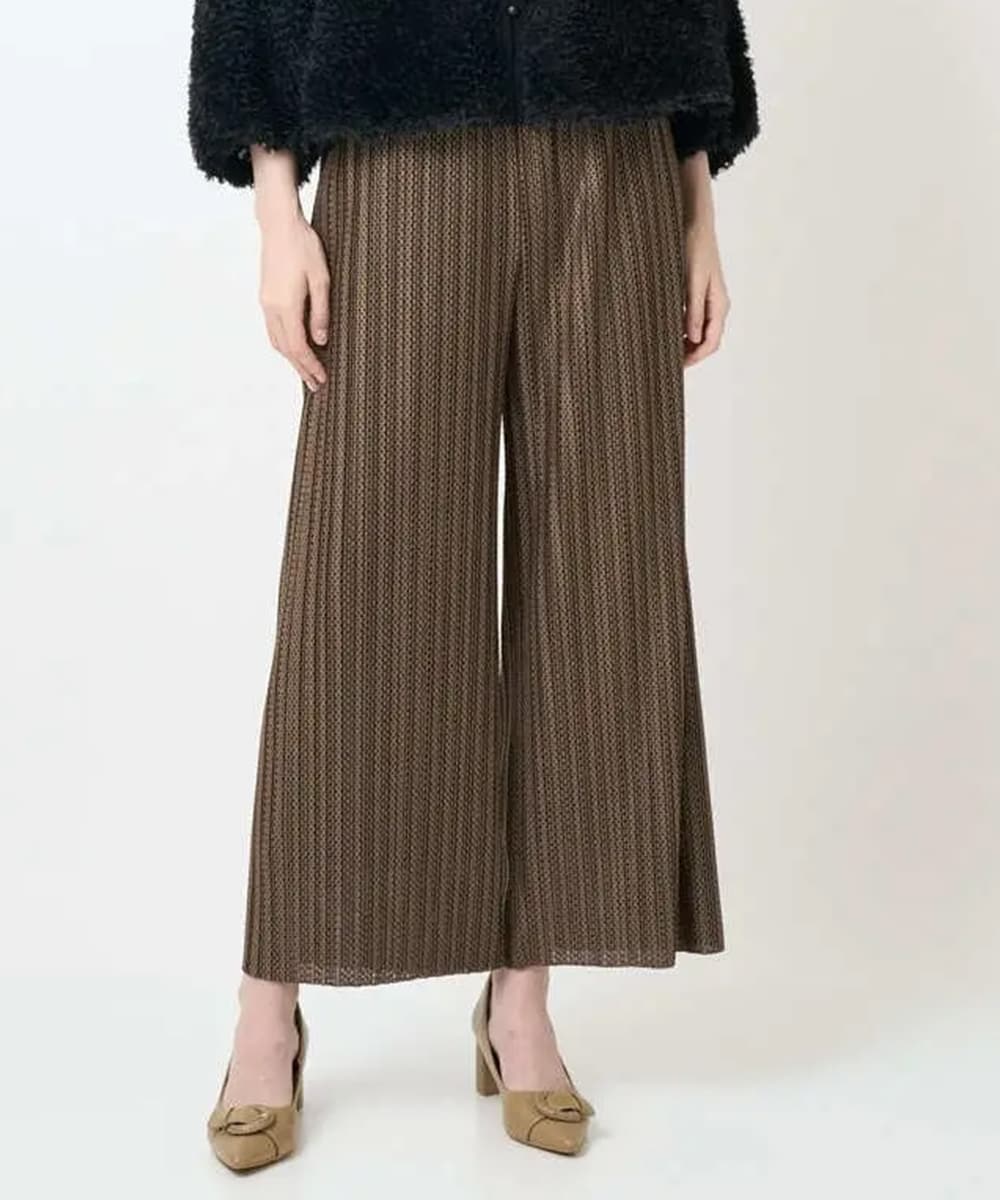 メッシュ生地のプリーツパンツは軽くて楽ちん。気になる太もももスッキリ見えます。シワになりにくいのでスニーカーと合わせてご旅行にもおすすめです。