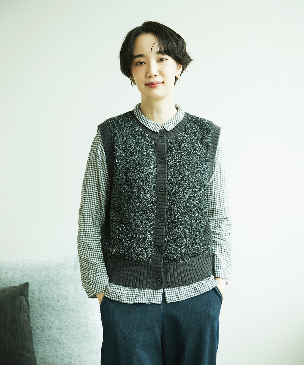 [洗える・日本製]ヘリンボンシャーリングブラウス