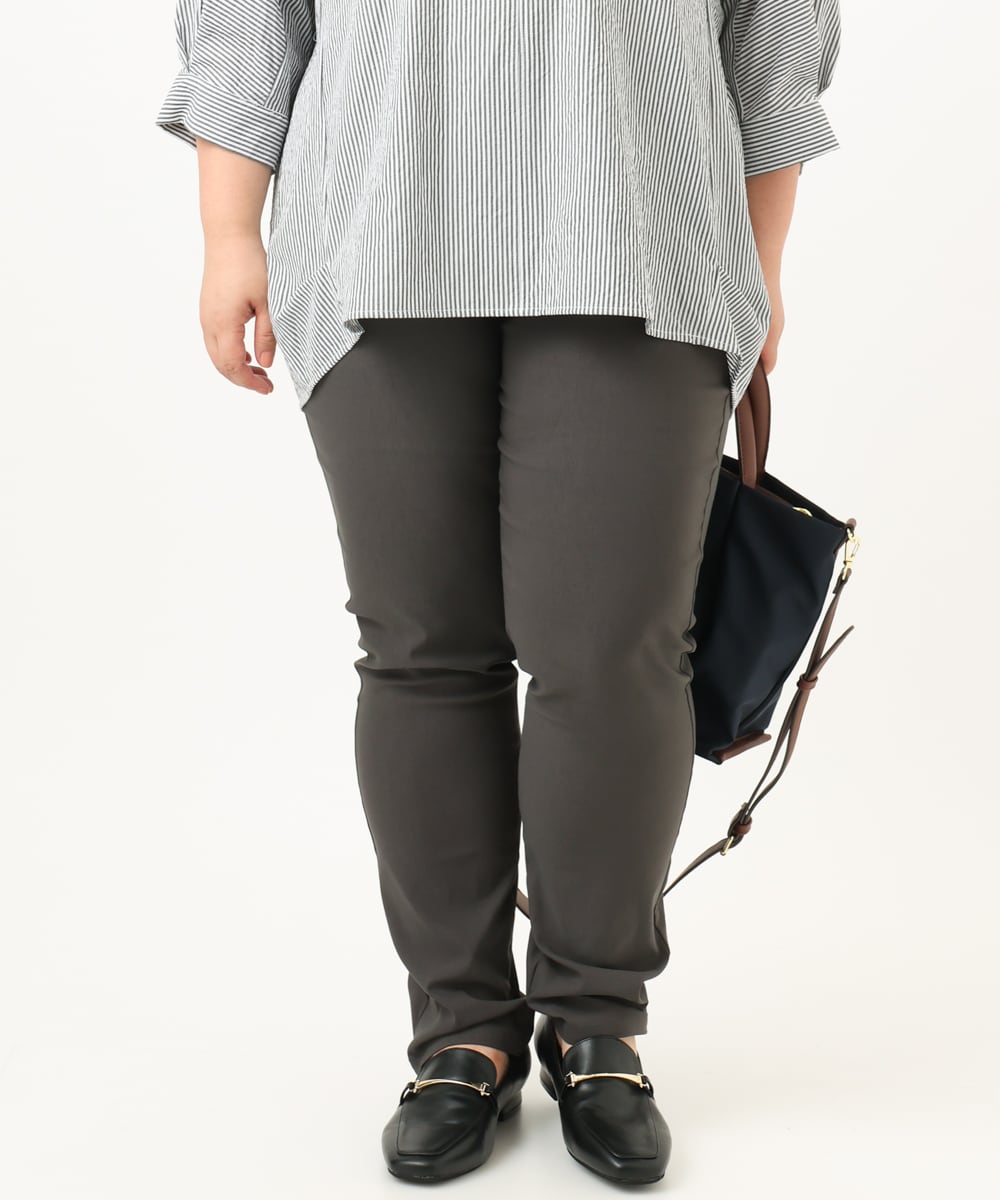 ウエストゴム仕様のストレッチスリムパンツと合わせて、通勤や旅行に便利な