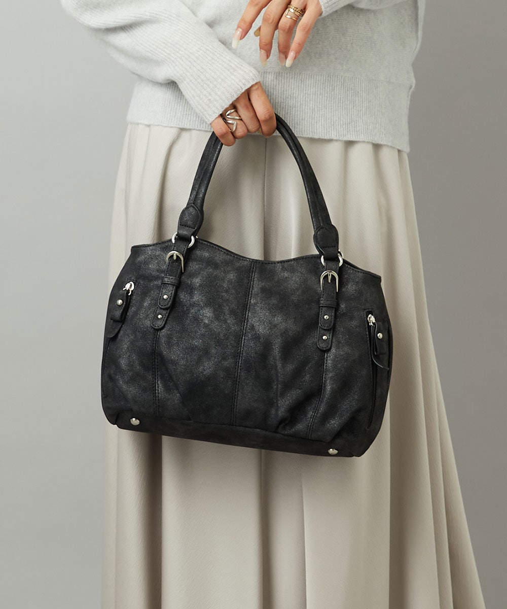 タックを施した丸みのあるフォルムが女性らしく、上品な雰囲気に魅せてくれるトートバッグです。