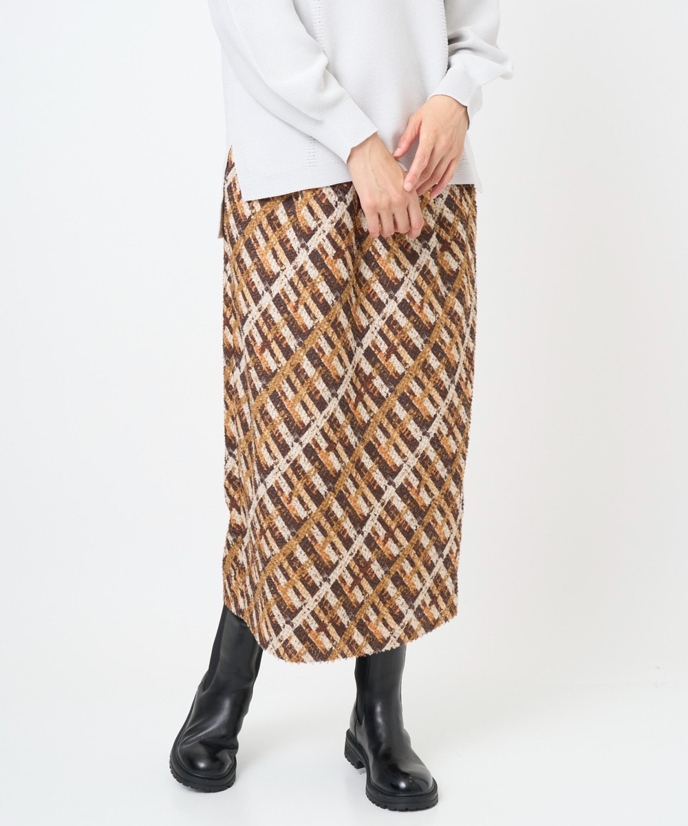 ふんわりとした素材感のベスト&スカートで秋ムード高まるルックスに◎