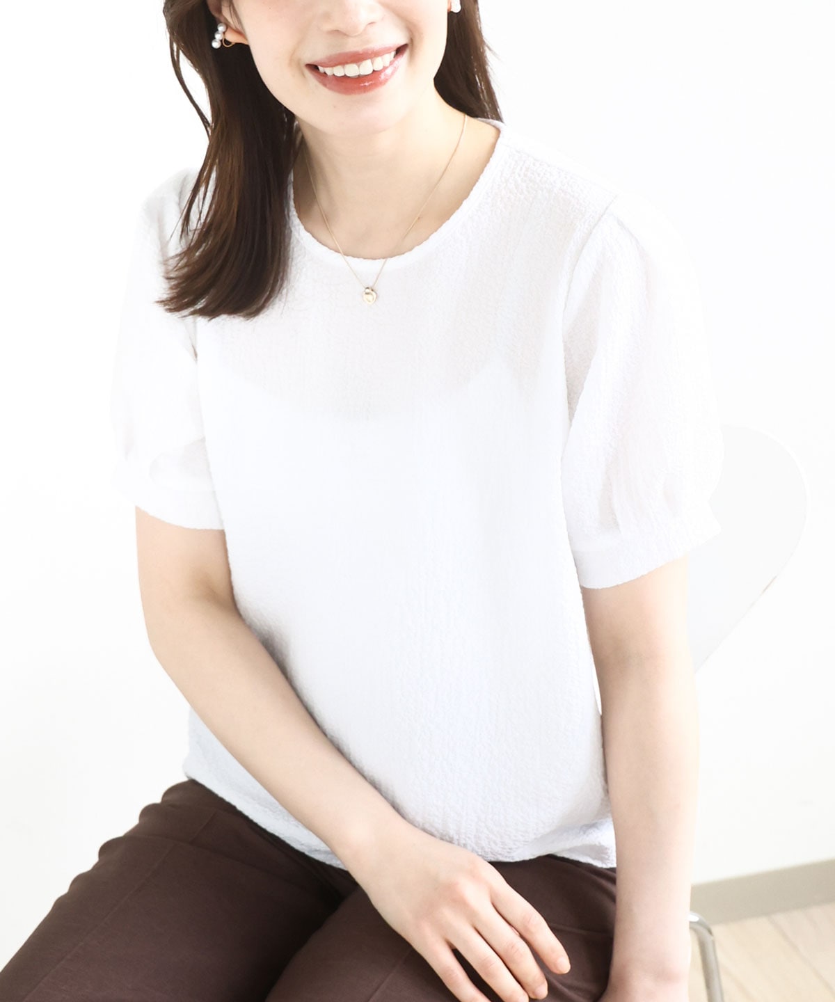 ふくれシャーリングパフスリーブトップス/洗える/WEB限定サイズあり