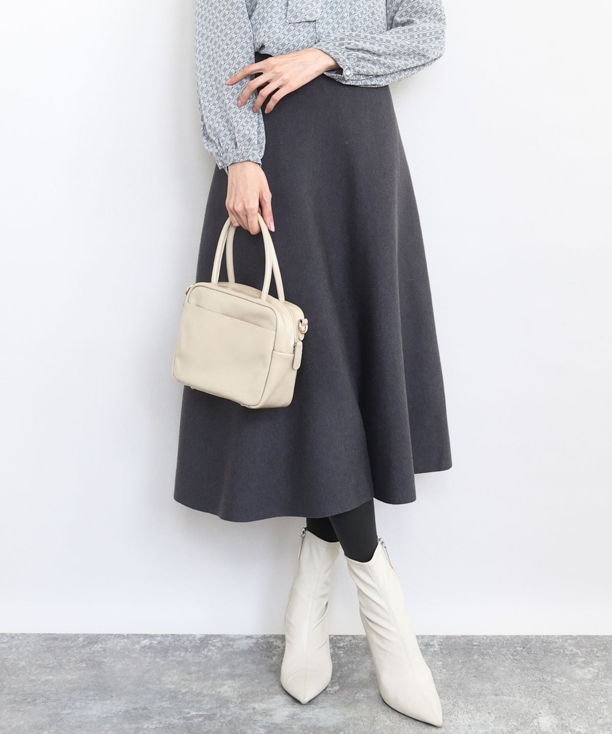 スムース編みニットフレアースカートは、美しいフレアラインと裏地付きのウエストゴム仕様で、着心地も抜群。