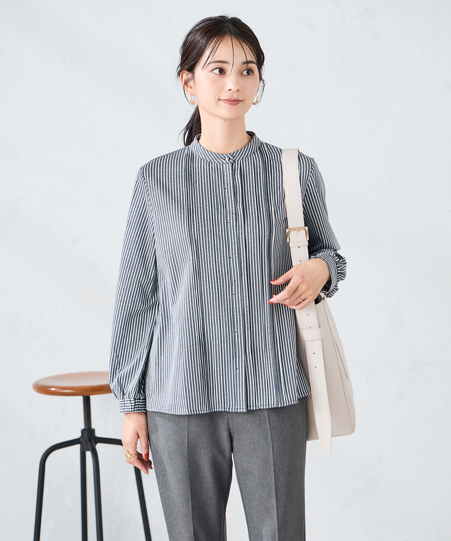 すっきり見えのピンタックブラウス。