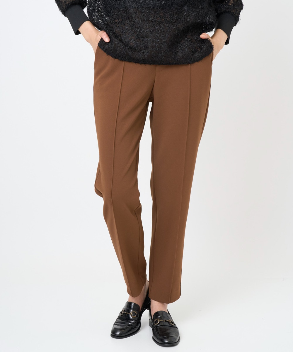 [日本製]カットジョーゼットストレッチテーパードパンツ