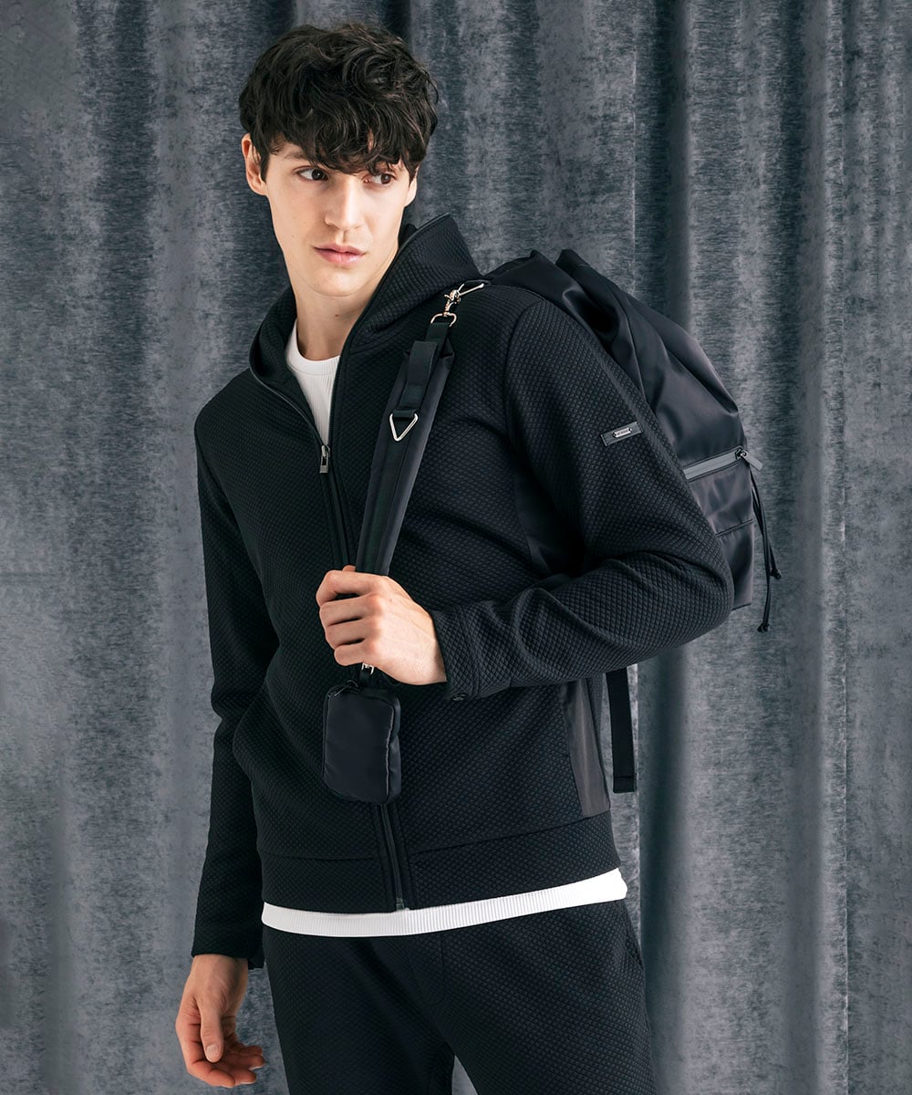 同素材のパンツを合わせ、セットアップスタイルでも着て頂けます。