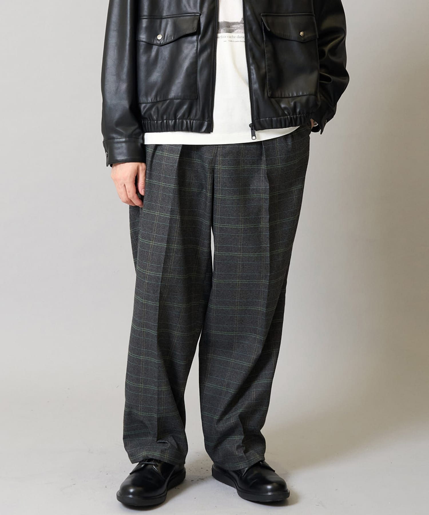 【洗濯機で洗える/ストレッチ】チェック柄2タックワイドイージースラックス