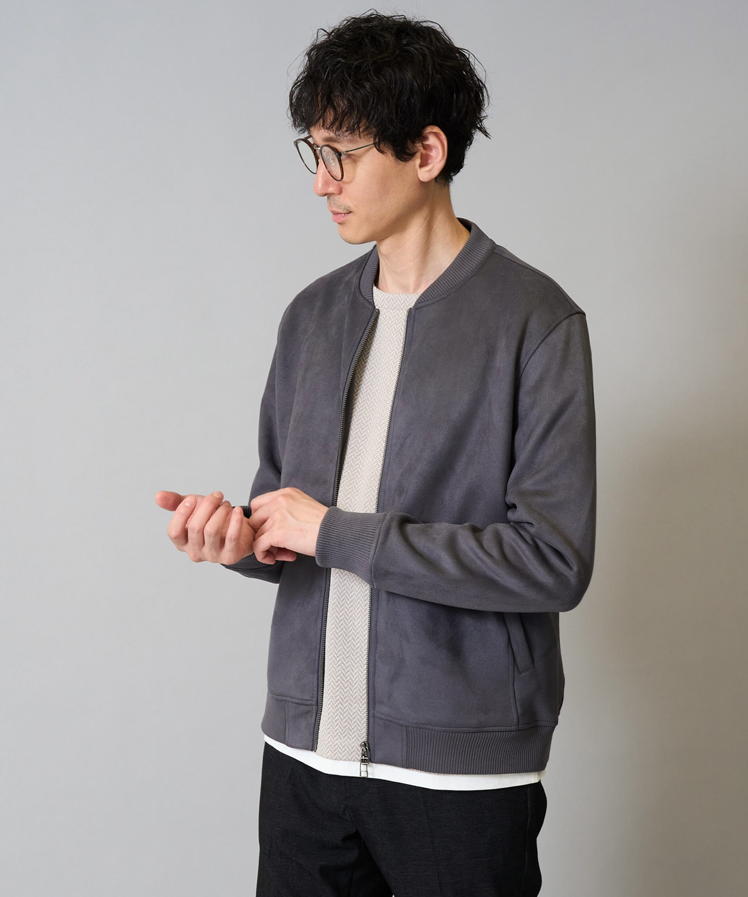 【雑誌MonoMax11月号掲載】フェイクスエードリブブルゾン【イージーケア/ストレッチ/洗濯機で洗える】