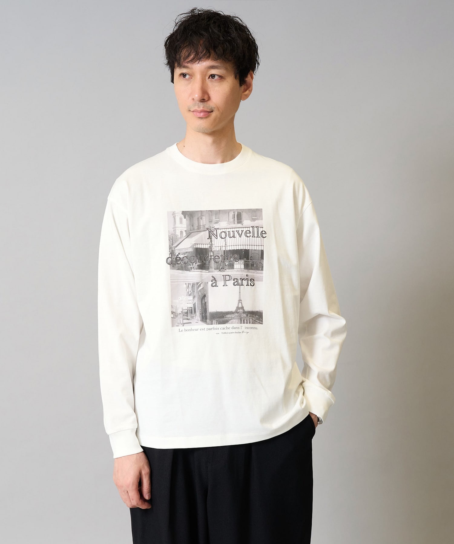 【綿100%】フォトプリントワイドシルエットカットソー ロンT