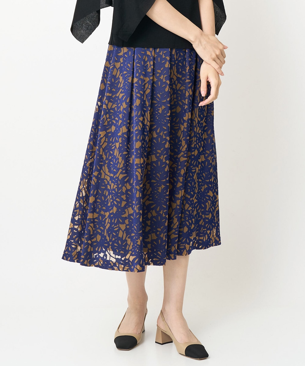 セットアップ対応のフラワーオパールプリントブラウスとスカートは、絶妙なバイカラーと美しいフレアシルエットが女性らしさを引き立てます。