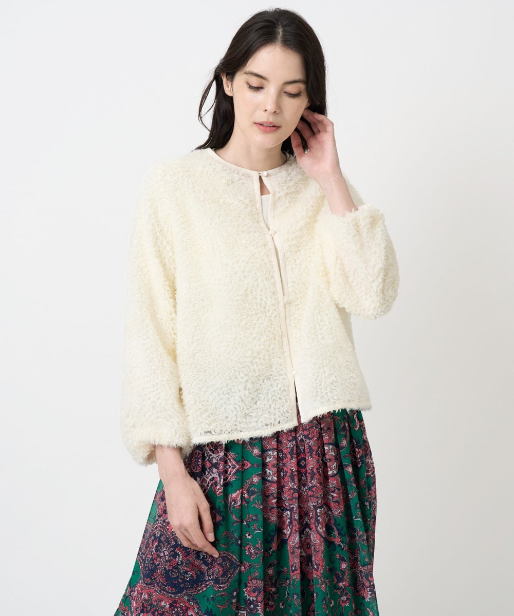 上品なチュール刺繍羽織りは、羽織るだけで旬な雰囲気に仕上がり、軽やかさも兼ね備えています。