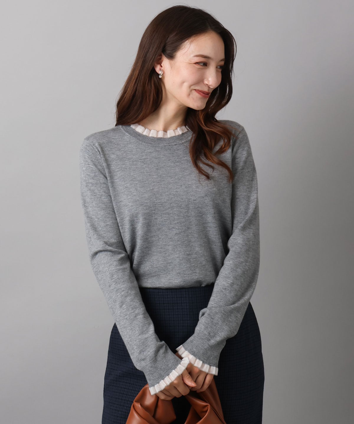 衿端、袖口にシアー素材でミニフリルをあしらった人気ニットが今季も登場。