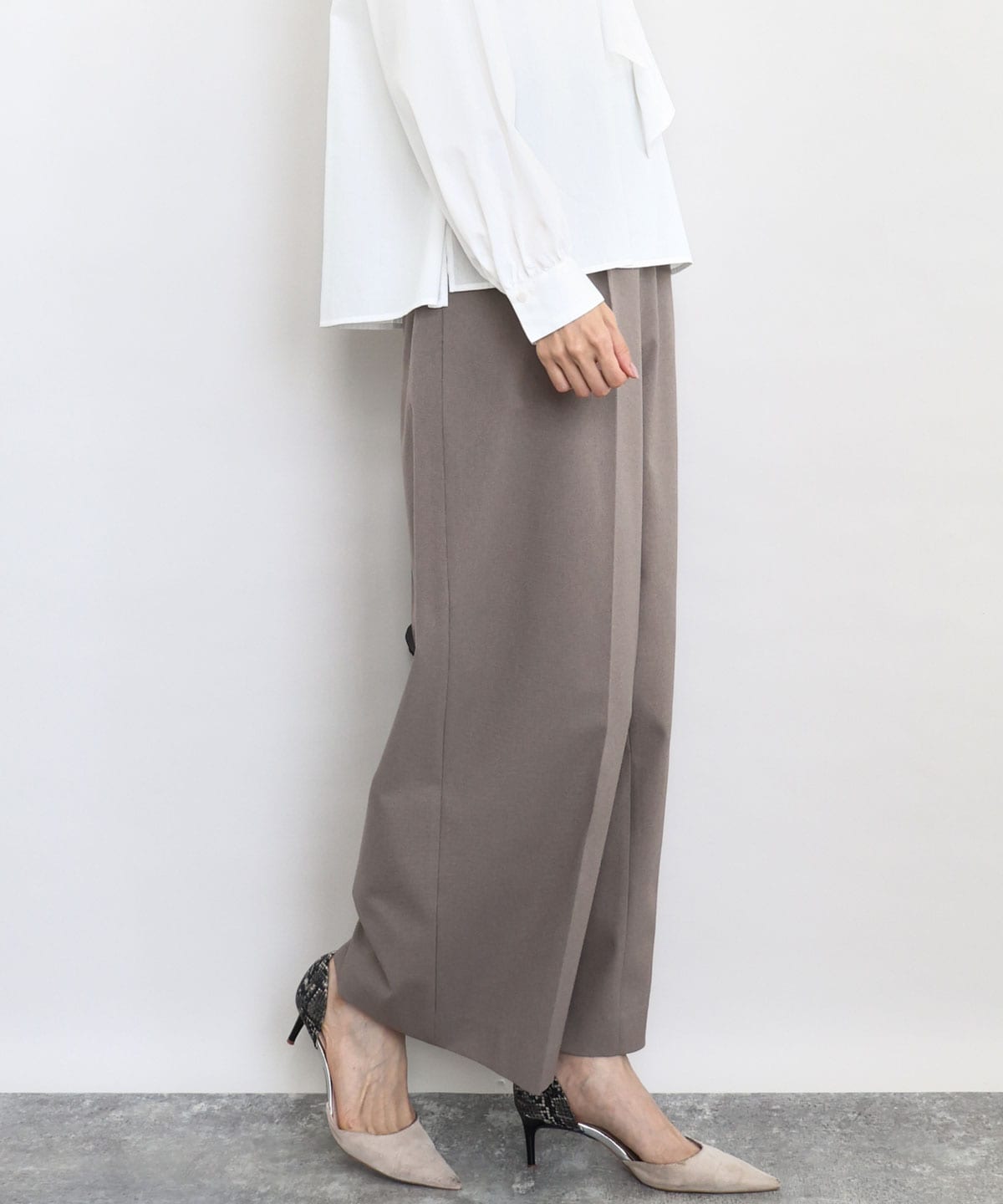 ウエストはゴム仕様のプルオンタイプで着やすくなっていながらきちんと感のあるシルエットです。